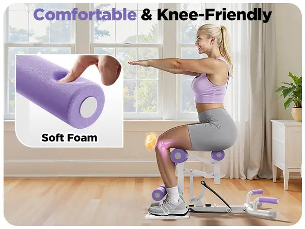 This machine targets glutes, legs, and core for strength and sculpting; It securely assists squats, enables high-position push-ups, and improves balance and joint mobility